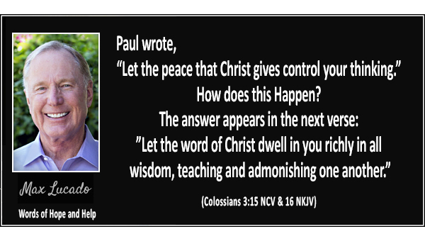 ....Listen quietly for His voice. Sometimes its just a nudge. .......Can you hear Jesus saying, ...."REMEMBER WHAT I TOLD YOU ABOUT MY PEACE"? ....We're here Lord, ....help us remember!