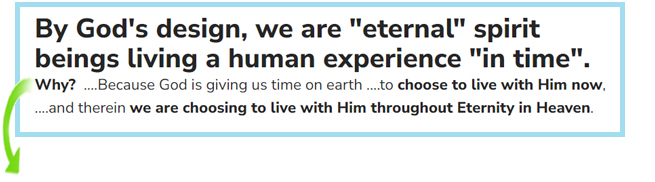 ....to live in Eternity with God requires our "spiritual birth" through Christ Jesus